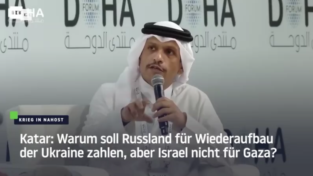 🚨Katar: Warum soll Russland für Wiederaufbau der Ukraine zahlen, aber Israel nicht für Gaza? Jó kérdés? A válasz? Onnantól “kettős mérce”?