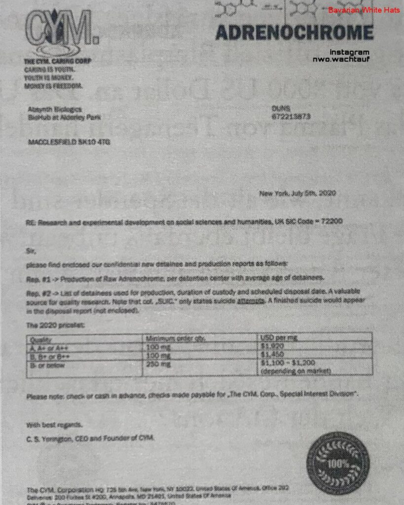 Az adrenochrome-sztori. (részlet) – talán újra kellene gondolni egyet s mást, pl. a jelenlegi háborúk valódi hátterét (“causa sui”) – nem ásványkincsek meg miegymás, hanem “adronochrome” és annak egész kontextusa? “Z” mint “speciális haddűvelet” …